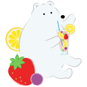サングラスをかけて、ビーチでくつろぐトナカイのイラスト
