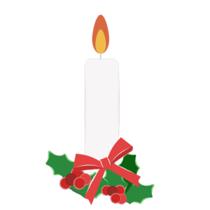 クリスマスのリボンで飾ったキャンドルのイラスト