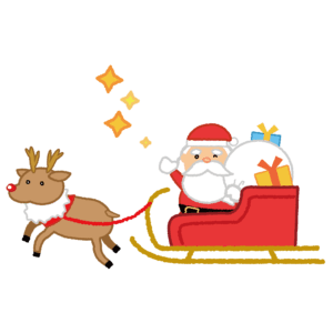 ビーチでくつろぐサンタクロースとトナカイのイラスト