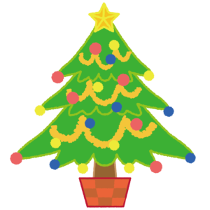 クリスマスツリーの前に置かれた沢山のプレゼントのイラスト