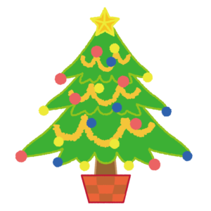 クリスマスツリーの前に置かれた沢山のプレゼントのイラスト