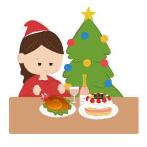 一人ぼっちでクリスマスを過ごす女性のイラスト
